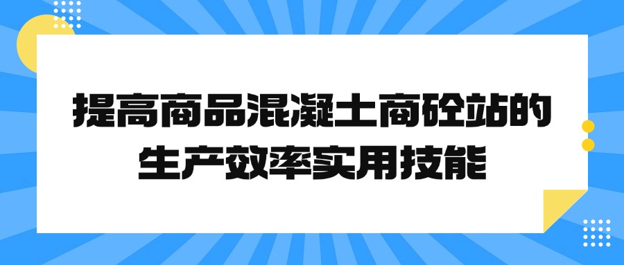 商品混凝土商砼站在我国经过20多年的发展,技术越来越成熟,由当初的低效率,高能耗发展到今天高效低能耗,商品混凝土商砼站市场在经历一次又一次的变革,随着时间的推移,商品混凝土商砼站市场也在持续升温,建好了的搅拌站,怎样才能提高生产效率以满足建筑工程的需要呢?下面,我们就与大家共同探讨这个方面的问题。三个时间结点投料时间、搅拌时间和出料时间,这三个时间是影响搅拌站生产效率的三个时间结点。首先,用户在使...